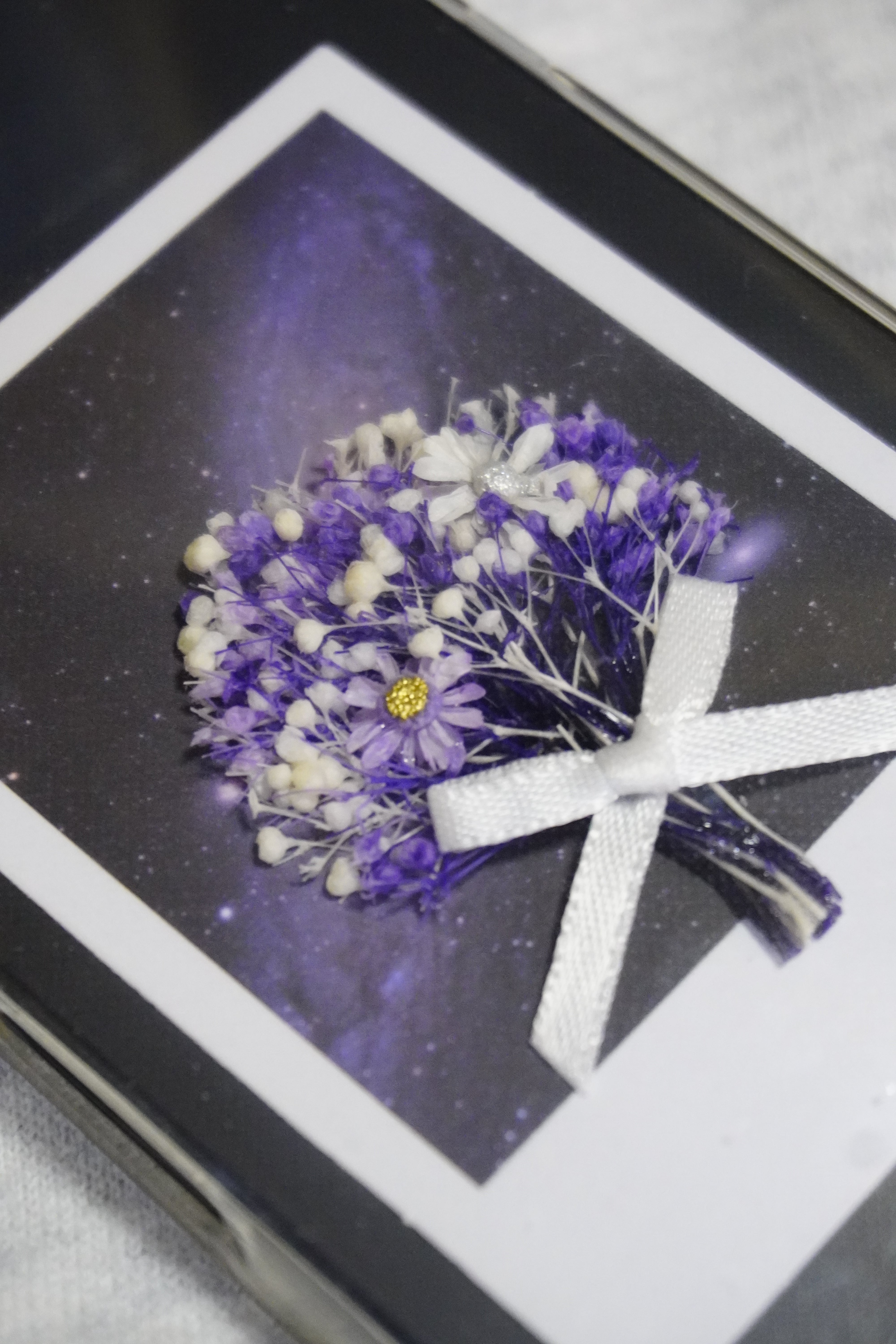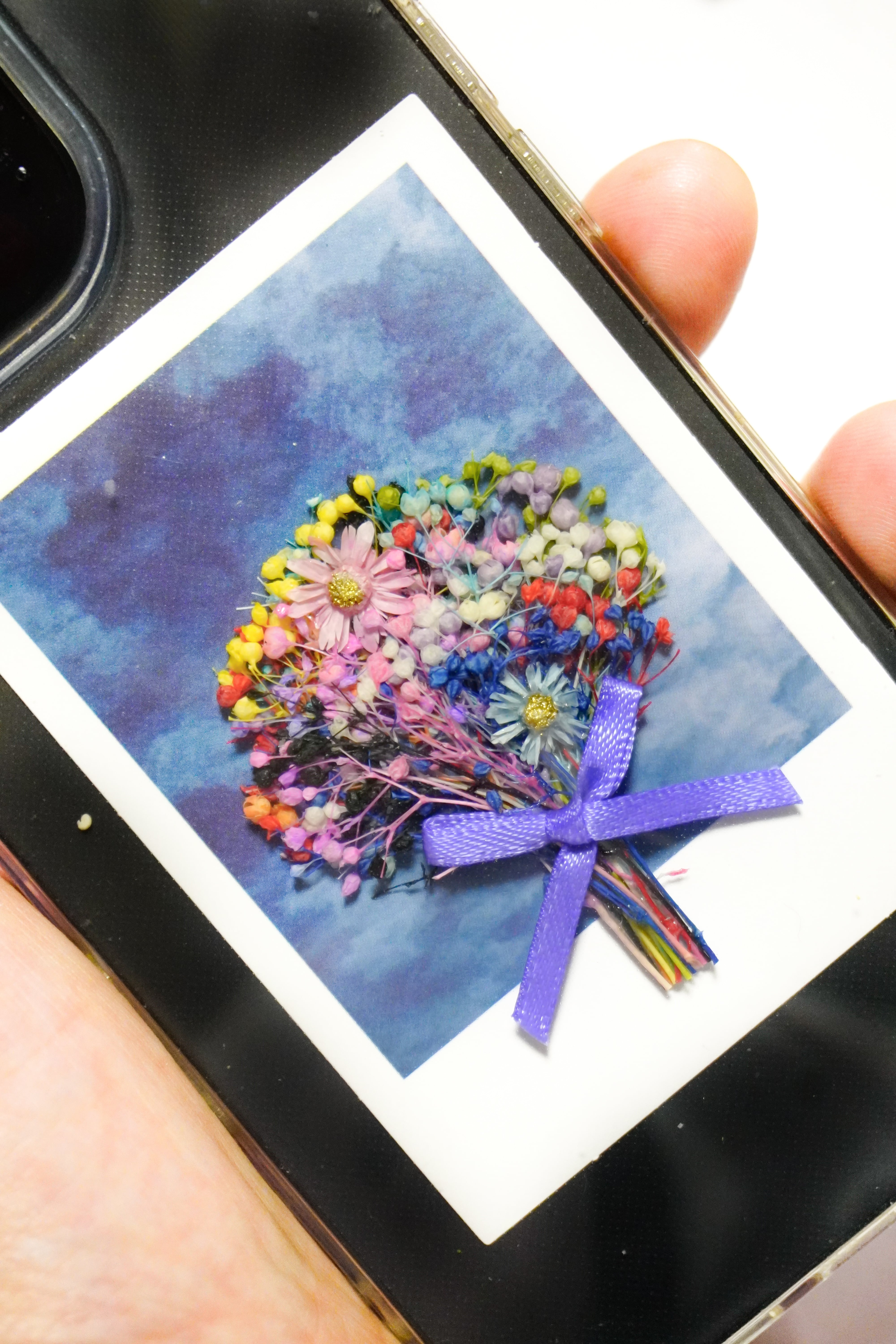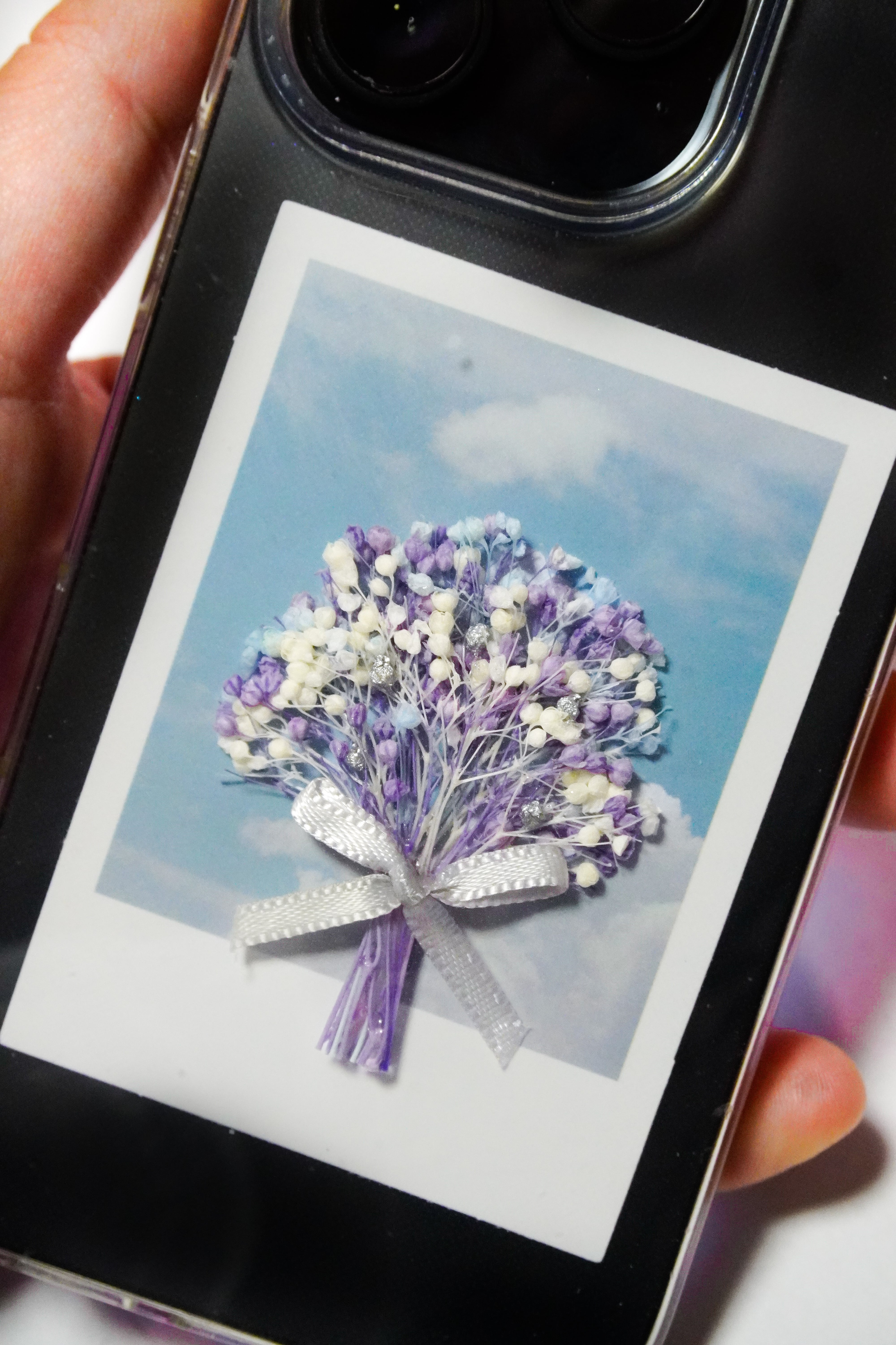 透明のスマホケースに挟んで楽しめる、小さなシークレットブーケ。