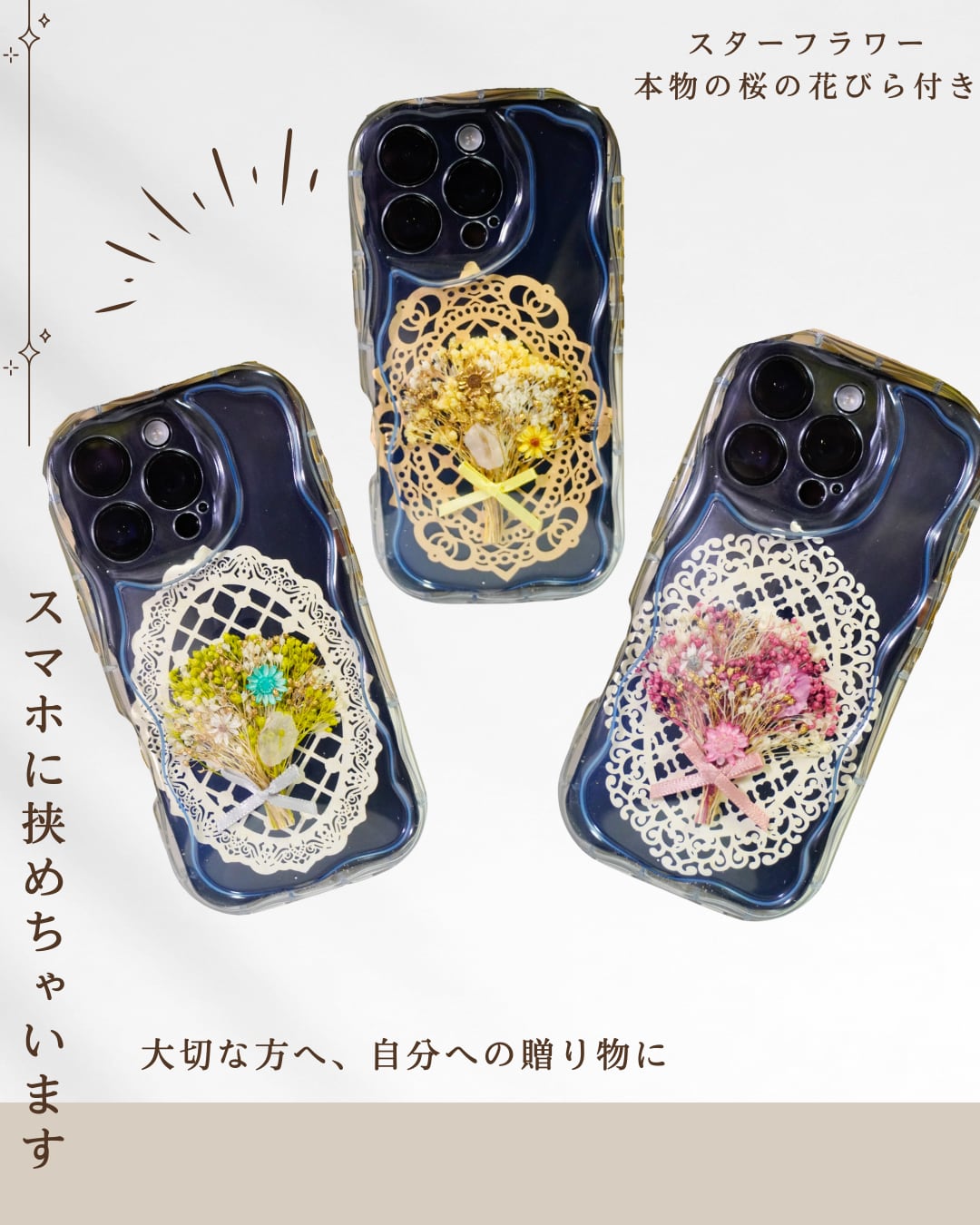ブーケを スマホケースに挟んで持ち歩くのも良し。